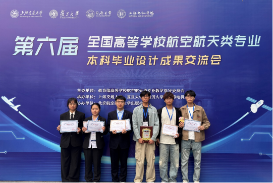 2025年5月24日,第六届全国高等学校航空航天类专业本科毕业设计成果交流会于上海交通大学顺利举办,WilliamHill威廉希尔2021届本科毕业生肖邦、黄士升、米瀚沁和于化龙四名同学参赛,凭借扎实专业素养与创新实践能力脱颖而出,共荣获1项一等奖、3项二等奖,充分彰显学校对航空航天人才实践能力与创新思维的培育成效,诠释“空天报国”的使命担当!